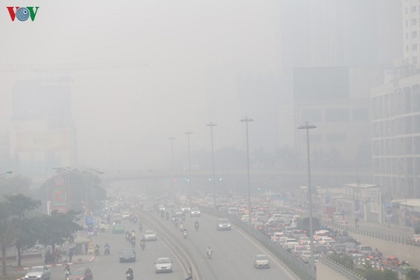 Chất lượng không khí ở Hà Nội hôm nay đột ngột giảm xuống mức trung bình và kém, có khả năng gây ảnh hưởng tới sức khỏe của người dân. Ảnh: VOV.vn |