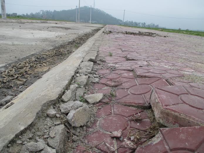 Theo quan sát, toàn bộ hạng mục công trình gần như đã trở thành một một bãi chăn thả trâu bò của nhân dân. Rác rưởi, phân trâu bò, nước uế thải… tràn ngập lênh láng khắp mọi nơi. Khuôn viên tái định cư đã vậy, chất lượng công trình mới là vấn đề đáng quan tâm. Trên toàn tuyến, nhiều chỗ gạch block lát vỉa hè đã bị sụp lún thành hố sâu, hệ thống bó vỉa, tấm đan mương thoát nước bị nứt nứt nẻ, bong tróc. Chưa hết, dọc theo mương chỗ thì có lưới chắn rác, nhưng có chỗ lại không được lắp đặt, xây dựng. Hệ luỵ tất yếu là có nơi rác ứ đọng cả mấy tháng trời vì không có ai dọn dẹp, nạo vét, nhưng có nơi rác cứ thế tuồn vào lấp kín hố ga, mùi hôi thối bốc lên nồng nặc.