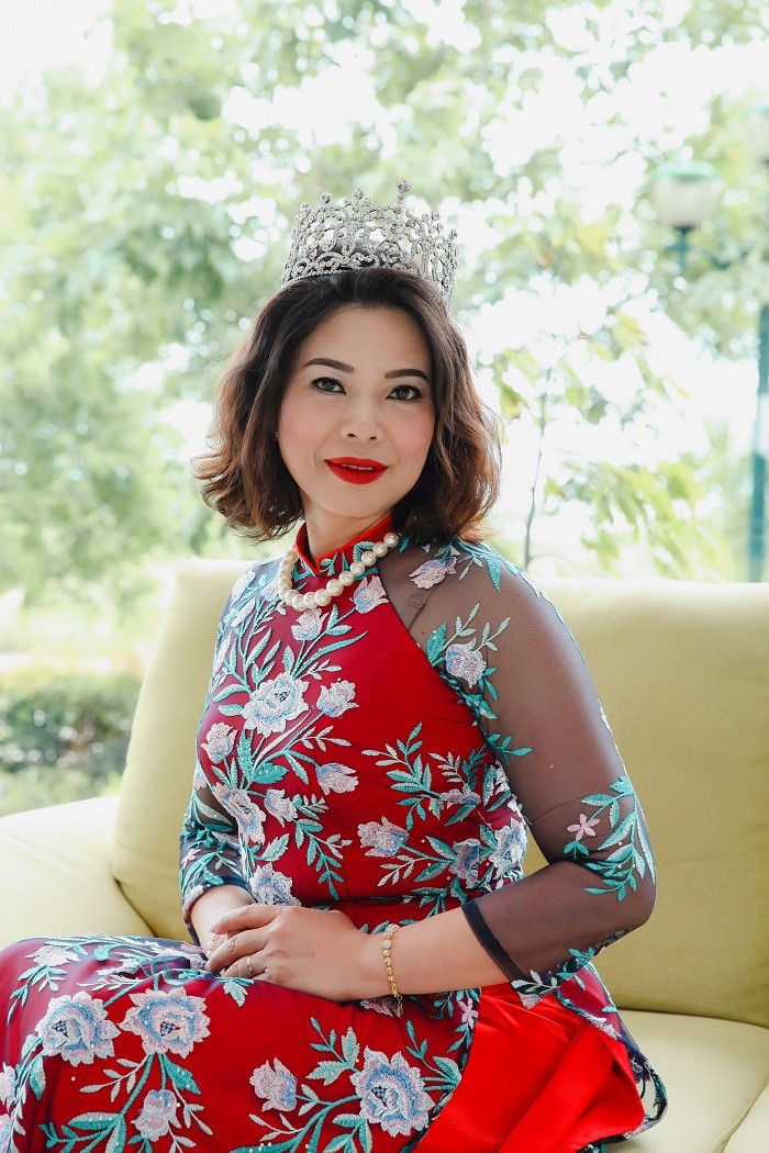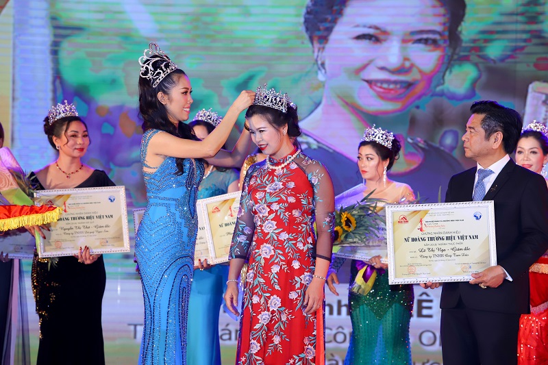 Bà Nguyễn Thụy Oanh - Trưởng Ban tổ chức trao Vương miện Nữ hoàng thương hiệu Việt Nam ngành thực phẩm cho bà Lê Thị Nga |