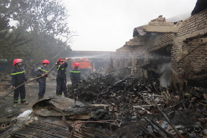 24 gian hàng bị thiêu rụi trong vụ cháy chợ Ba Đồn, ước tính thiệt hại khoảng 50 tỷ đồng. Ảnh Tuổi trẻ. |