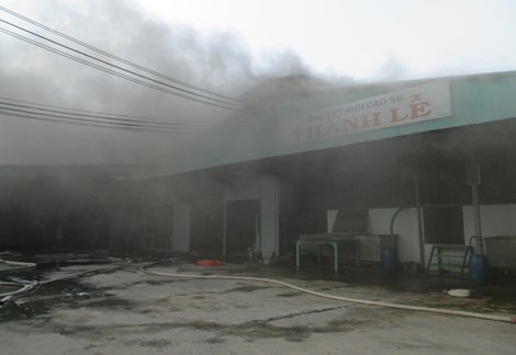 Có thể lửa hàn đã rơi xuống lò sấy mủ cao su, cháy âm ỉ, khi lửa bùng cháy lên dữ dội thì mọi người mới phát hiện, tri hô, huy động lực lượng công nhân tập trung dập lửa. Tuy nhiên, dập lửa bằng máy bơm tại chỗ không có hiệu quả, do ngọn lửa rất lớn, khói đen bao trùng cả nhà máy. Đến khi nhiều xe chữa cháy của công an huyện, tỉnh đến hiện trường, tiến hành chữa cháy, đám cháy mới được khống chế.