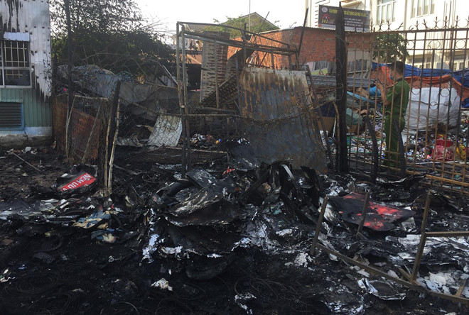 Kho phế liệu bị cháy rụi bên cạnh ngân hàng. Ảnh: Zing |