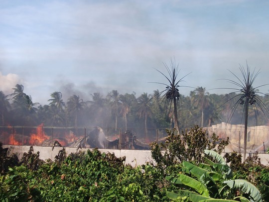 Nhà kho của Công ty May mặc Cây Dừa bị thiêu rụi hoàn toàn. (Ảnh: VnMoney) |