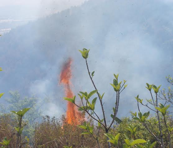 | Đám cháy được phát hiện nằm trên đỉnh núi Hàm Rồng. |