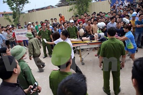 Lực lượng cứu hộ đưa người đàn ông đi cấp cứu. (Ảnh TTXVN) |
