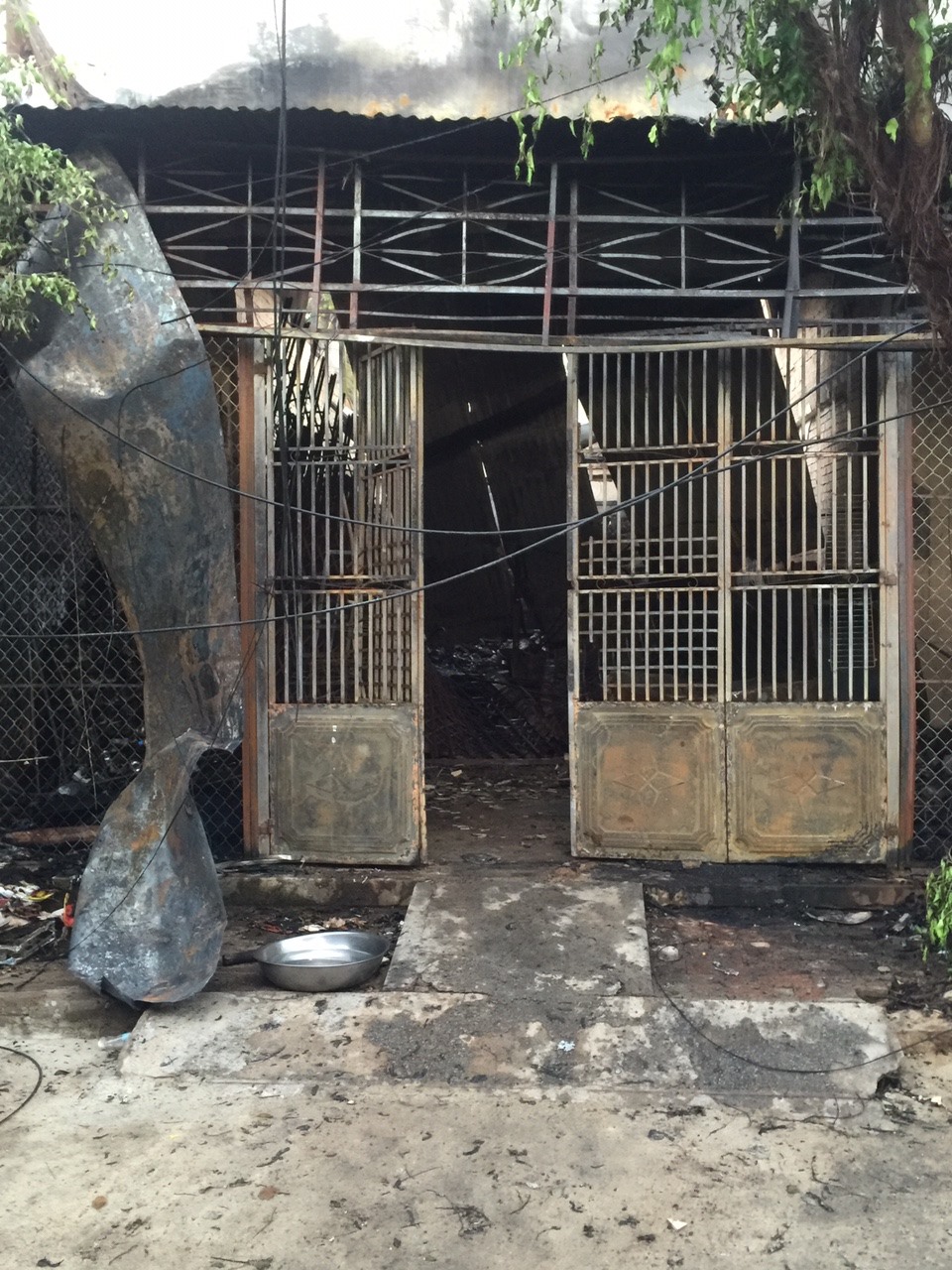 Thời điểm xảy ra hỏa hoạn, hai mẹ con chị Trang đang ngủ say. Khi đám cháy bùng lên ở phía trước, mái tôn sắt rơi xuống loảng xoảng làm chị Trang thức giấc và kịp ôm con trai thoát khỏi căn nhà đang cháy từ cửa sau.