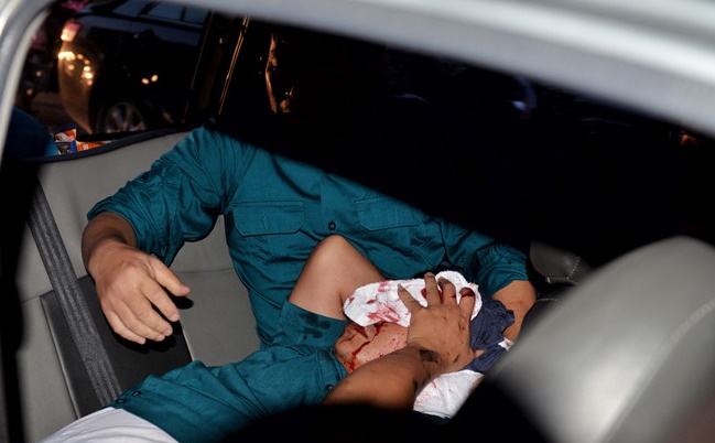 | Một dân phòng bị mảnh kính rơi vào mặt phải đi cấp cứu - Ảnh: Vnexpress |