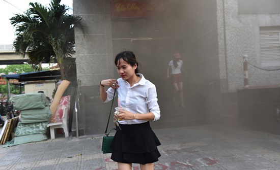 Lực lượng phòng cháy chữa cháy đã phát loa thông báo cho những người còn ở tòa nhà nhanh chóng rời di chuyển tới vị trí an toàn.