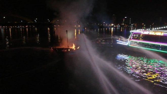 Chiếc tàu cá neo đậu trên sông Hàn bị cháy rụi trong đêm trị giá khoảng 1 tỷ đồng và thiệt hại ban đầu ước tính khoảng 500 triệu đồng.