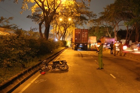 Khi đi vừa qua giao lộ Nguyễn Văn Linh – Nguyễn Thị Thập (phường Bình Thuận, quận 7) khoảng 300m thì bất ngờ xảy ra va chạm với xe container mang BKS: 51C – 348.52 do tài xế tên Bình điều khiển chạy cùng chiều.