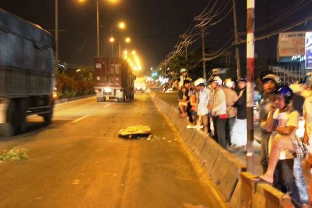 Vụ tai nạn xảy ra lúc 21h, ngày 9/4 trên quốc lộ 1A, đoạn qua khỏi Nghĩa trang thành phố khoảng 100m (gần đường số 12), thuộc KP.4, P.Linh Trung, Q.Thủ Đức, TP HCM).