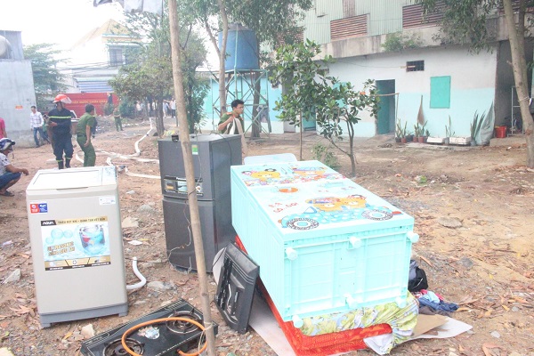 Người nhà của chủ doanh nghiệp khóc ngất khi chứng kiến cảnh lửa thiêu rụi sản phẩm, máy móc… Trong khi đó công nhân công ty cũng đau lòng chẳng kém vì vụ cháy xảy ra vào ngày cận Tết.