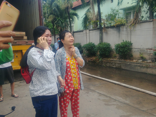 Người nhà chủ công ty khóc lặng khi nhìn khu xưởng bị thiêu rụi. |
