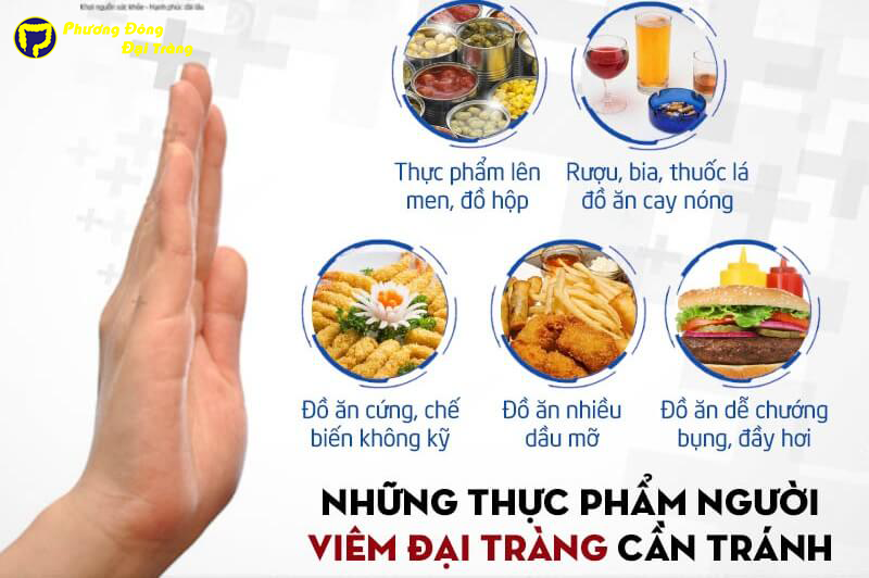 Trong ăn uống, người bệnh viêm đại tràng cần kiêng đồ ăn kích thích với cơ thể. Tùy cơ địa từng người mà đồ ăn kích thích với cơ thể khác nhau. Kiêng ở đây người bệnh sẽ kiêng những đồ mà ăn uống vào hay đi ngoài , còn đồ nào ăn uống được bình thường thì không cần kiêng.