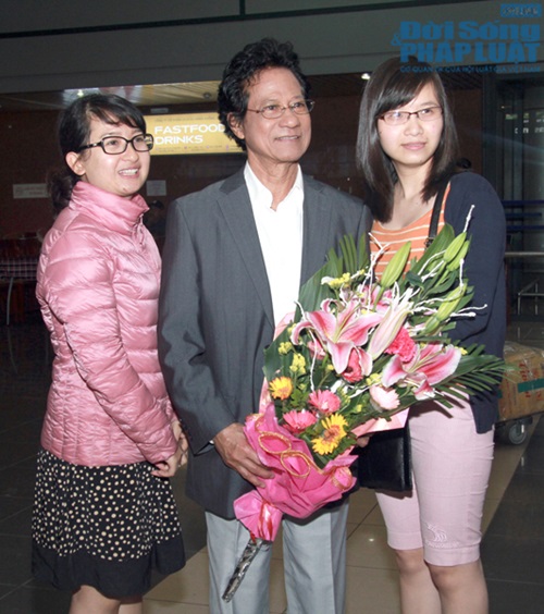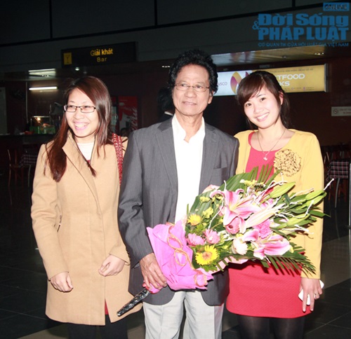 Cùng báo Đời sống và Pháp luật xem lại một số hình ảnh ca sĩ Chế Linh và vợ tại sân bay Nội Bài tối qua: