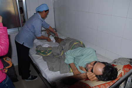 | Ông Chấn hiện đã qua cơn nguy kịch, nhưng do vết thương quá nặng nên chân phải đang bị hoại tử. Ảnh: N.H |