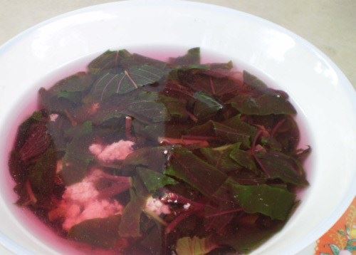 "Sao em mua rau dền màu xanh, nấu lên lại màu đỏ, sợ quá chưa dám ăn". |