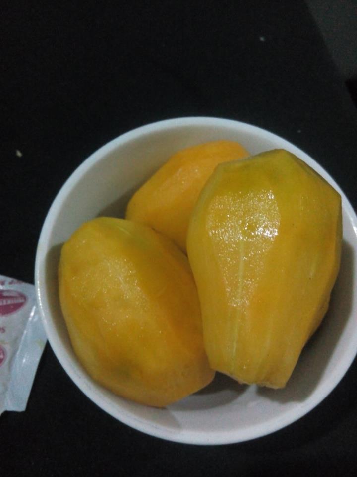 "Quả cóc em mua về có màu xanh mướt mà khi gọt vỏ lại có màu vàng ươm thế này. Các mẹ cho em biết tại sao được không ạ?". |