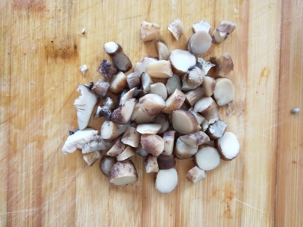 - Bước 2: Nấm hương thái hạt lựu như lạp xưởng.