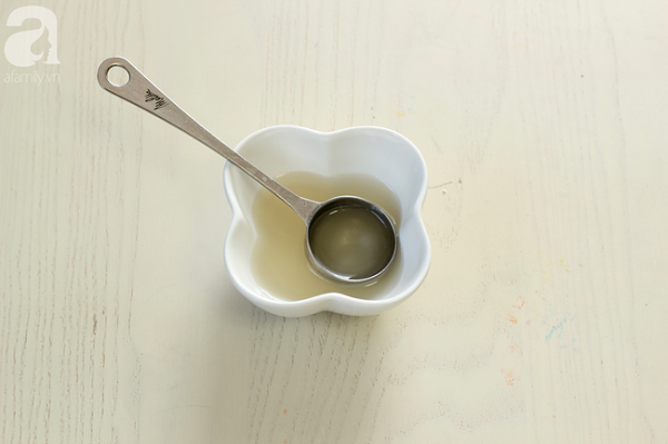 - Bước 1: Pha hỗn hợp giấm sushi: cho 2 muỗng canh dấm ăn + 1 muỗng canh đường + ½ muỗng cà phê muối trộn đều. Nếu bạn có chai giấm sushi pha sẵn thì sử dụng cũng được.