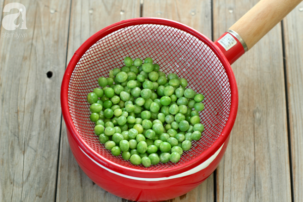 - Bước 2: Luộc chín đậu Hà Lan, ngâm vào nước đá lạnh để giữ màu xanh rồi vớt ra để ráo.