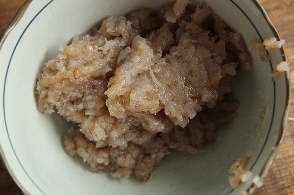 - Bước 3: Tôm bóc bỏ vỏ, rửa sạch rồi băm nhỏ cho vào bát.