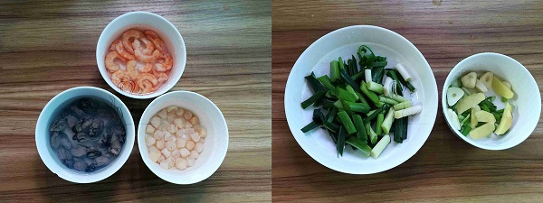 - Tôm khô, sò điệp, hàu rửa sạch, ngâm mềm.