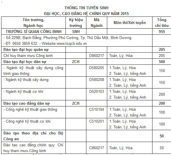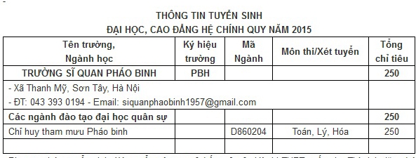 Đây là điểm đổi mới trong tuyển sinh CĐ quân sự 2015. Theo đó, năm 2014, hệ CĐ quân sẽ xét tuyển từ nguồn thí sinh dự thi vào hệ ĐH quân sự khối A các trường quân đội không trúng tuyển nguyện vọng.