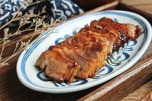 - Bước 3: Cho thịt đã ướp cùng nước sốt vào nồi cơm điện, rắc một chút đường lên trên bề mặt miếng thịt. Đậy nắp nồi cơm rồi nhấn nút nấu (Cook). Khi nồi cơm điện nhảy lên nút giữ ấm (Warm) thì bạn mở nắp nồi, lật mặt miếng thịt rồi lại nhấn nút nấu.
