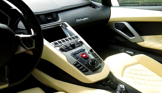 Khoang lái được trang bị như những chiến đấu cơ. Điểm nhấn đầu tiên chính là bảng điều khiển trung tâm của Lamborghini Aventador LP700-4 với hàng chục nút bấm khác nhau.