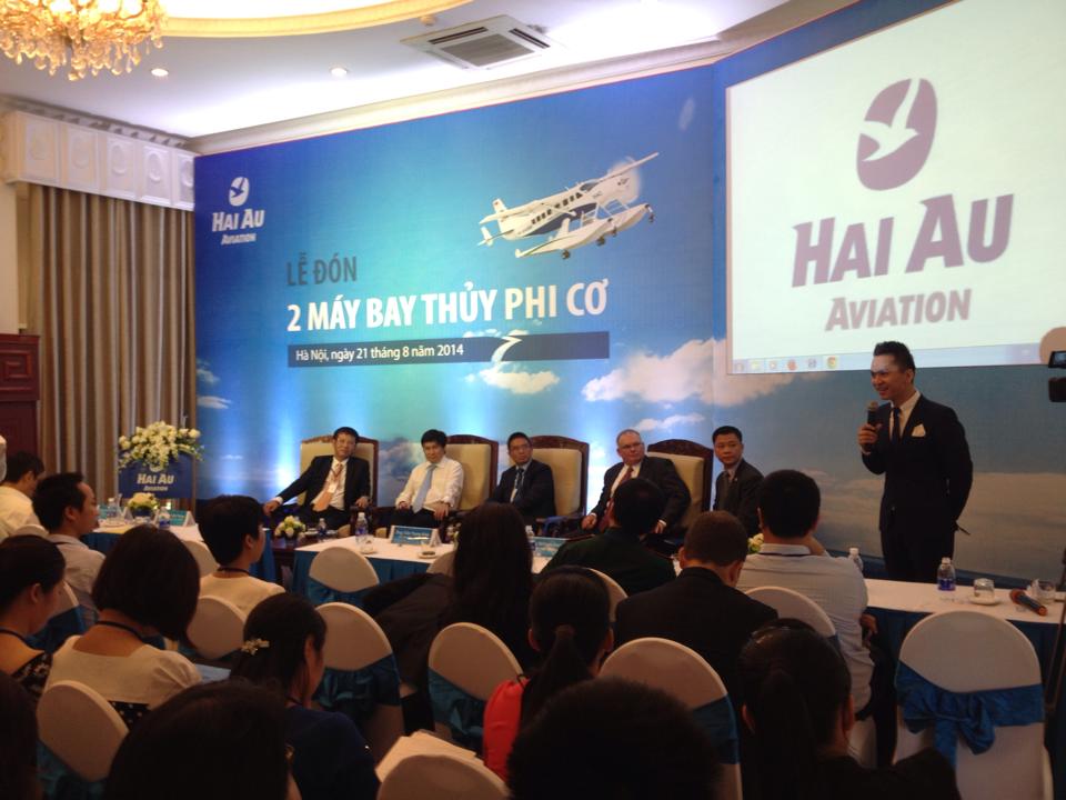 (ĐSPL) - Lễ đón 2 chiếc thủy phi cơ Cessna Grand Caravan EX thuộc thế hệ hiện đại nhất của Mỹ được Hãng hàng không Hải Âu thuộc Tập đoàn Thiên Minh (TMG) tổ chức tại sân bay Quốc tế Nội Bài.