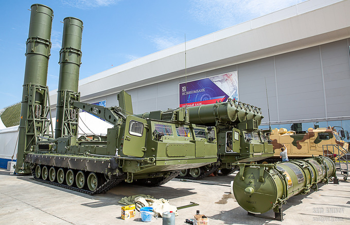 Xe phóng đạn cùng ống bảo quản kiêm bệ phóng thuộc tổ hợp phòng không tầm xa S-300VM "Antey-2500". Ảnh: Said Aminov |