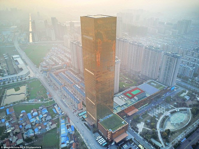 Tòa nhà khách sạn Gold Nugget với chiều cao 200m được xây dựng tại thành phố Nam Thông, tỉnh Giang Tô, Trung Quốc. |