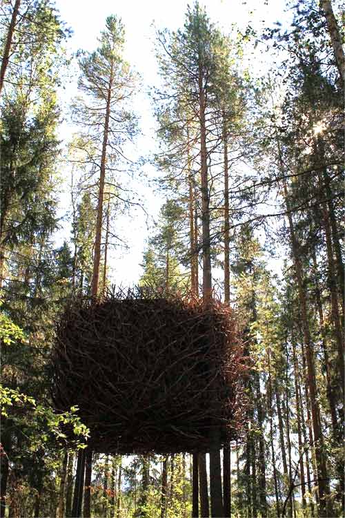 3. Bird's Nest (Thụy Điển). Cùng với Mirrorcube, Bird's Nest là một phần của Treehotel - một khách sạn gồm 6 ngôi nhà cây độc đáo. Bạn cũng có thể tìm thấy nhà cây UFO tại đây.