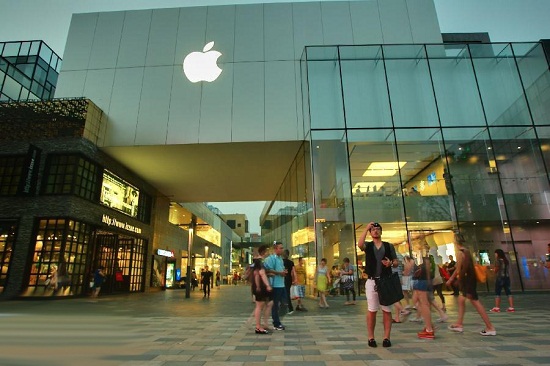 | Đây là cửa hàng đầu tiên của Apple tại Trung Quốc, bắt đầu làm việc từ năm 2008. Rất thú vị với logo Apple đặt ở toà nhà lưng chừng phố, gác lên cửa hàng và nhà đối diện. |