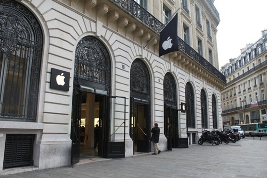 | Khi mở cửa năm 2009, đây là Apple Store đầu tiên của Pháp. Nằm trong trung tâm mua sắm dưới lòng đất bên trong bảo tàng lịch sử Louvre Museum, lối vào của nó đối diện với kim tự tháp ngược Inverted Pyramid nổi tiếng. |
