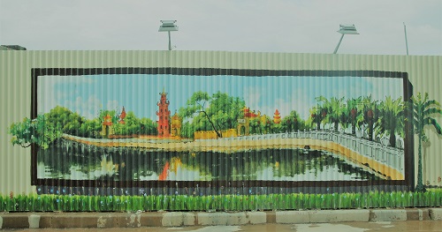 | Bức tranh rộng gần 1.000 mét vuông có chiều dài hơn 300 mét, chiều cao khoảng 3 mét, tọa lạc ngay lối đi vào của Goldmark City (136 Hồ Tùng Mậu, Bắc Từ Liêm, Hà Nội) được tổ chức kỷ lục VietKings chứng nhận là Bức tranh 3D dài nhất Việt Nam. |