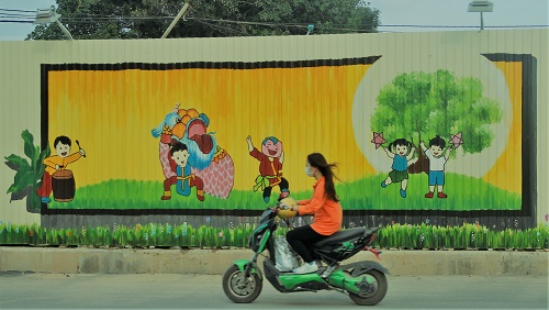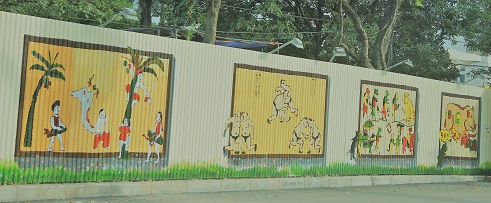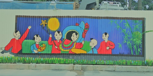 | Anh Lăng Văn Thành một trong những họa sĩ vẽ các bức tranh này cho biết: “Mỗi bức tranh đều được tái hiện lại những ngày lễ quan trọng của đất nước như Quốc Khánh, rằm Trung thu cùng các địa ranh khác nổi tiếng của Việt Nam. Bên cạnh đó, mỗi bức tranh đều có một vẻ đẹp riêng và tất cả đều đem lại cho người xem một cách chân thực nhất. Tuy nhiên, trong số đó tôi thấy tâm đắc nhất là những bức tranh Đông Hồ, bở lẽ nó có một đặt điểm riêng biệt rất thú vị”. |