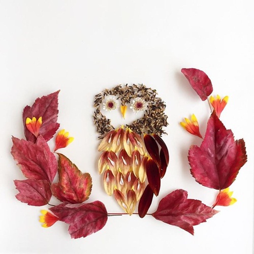 Đó có thể là hoa, là lá, cành cây… tất cả đều được biến hóa kỳ diệu, hợp lý trở thành những con vật và sự vật sinh động gấp bội. Nhờ những tác phẩm này, cô đã có hơn 200.000 người theo dõi trên Instagram, và trở thành một trong những nghệ sĩ về hoa được tìm kiếm nhiều nhất bất cứ nơi nào.
