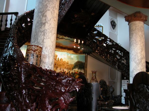 | Toàn bộ tay vịn cầu thang trong tòa lâu đài đều được làm bằng gỗ chạm khắc hình rồng. |