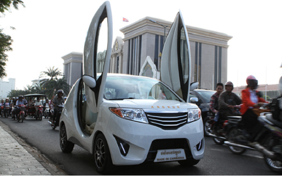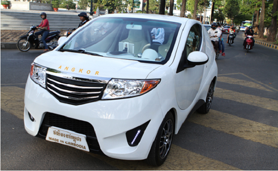 Công ty Heng Development Company của Campuchia vừa ra mắt chiếc xe ô tô điệnđầu tiên của xứ sở chùa Tháp, mang tên ngôi đền cổ Angkor - Angkor EV 2013. Sản phẩm chạy được 60km/giờ này là thiết kế của nhà sáng chế địa phương Nhean Phaloek.