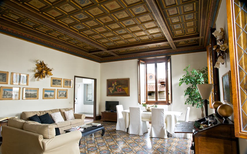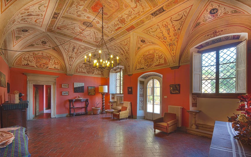 Tuscnay, ÝLâu đài tráng lệ với những bức tranh đầy cảm hứng trên trần nhà là nơi mà một thượng nghị sĩ thế kỉ 16 từng sinh sống. Tuy nhiên, căn hộ đang được rao bán với giá 13,39 triệu bảng.