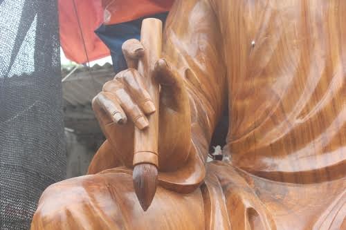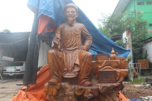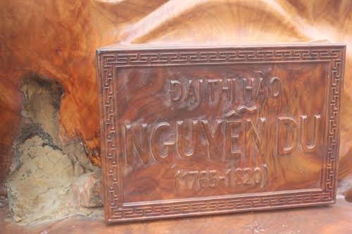 | Bức tượng cụ Nguyễn Du được làm từ loại gỗ gù hương (gỗ De hay Re - PV) là loại gỗ thuộc nhóm IV, có mùi rất thơm, không mối mọt... |