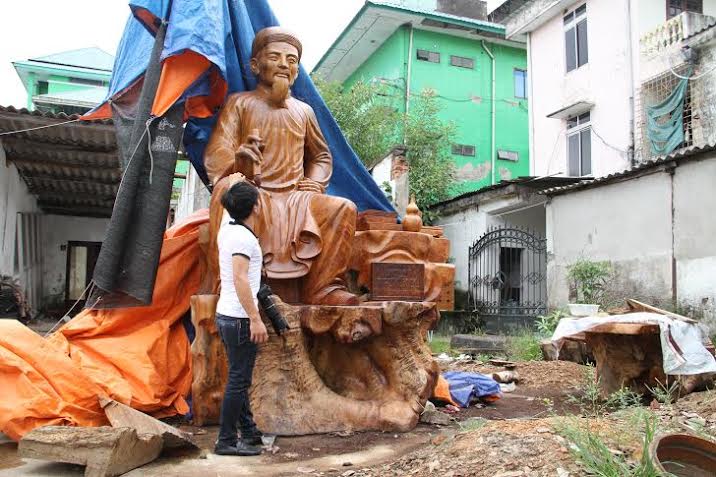 Dưới đây là một số hình ảnh về pho tượng gỗ Nguyễn Du được PV ghi lại: