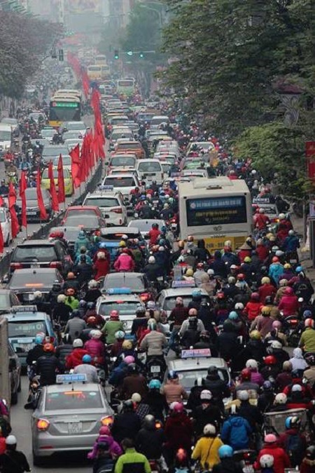 Được biết, khoảng hơn một tuần nay, mật độ phương tiện giao thông trên các tuyến phố khắp trung tâm Hà Nội tăng đột biến. Không chỉ ùn ứ, tắc cục bộ ở các nút thắt và vào giờ cao điểm như mọi khi, việc lưu thông có thể khó khăn, cực nhọc ở bất cứ đâu, bất cứ giờ nào trong ngày. Ngày hôm qua 23/1 (tức 26 Tết) giao thông khắp Hà Nội cũng “căng như dây đàn”.