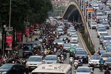 Phố Nguyễn Chí Thanh, phương tiện dày đặc trên tất cả các làn đường - Ảnh: báo Dân trí |