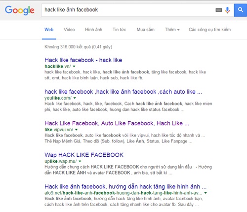 Có hàng ngàn trang lừa đảo xuất hiện dưới hình thức hack like |