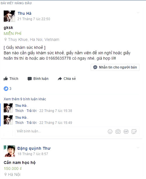 | Giấy khám sức khoẻ được rao bán công khai trên mạng xã hội |