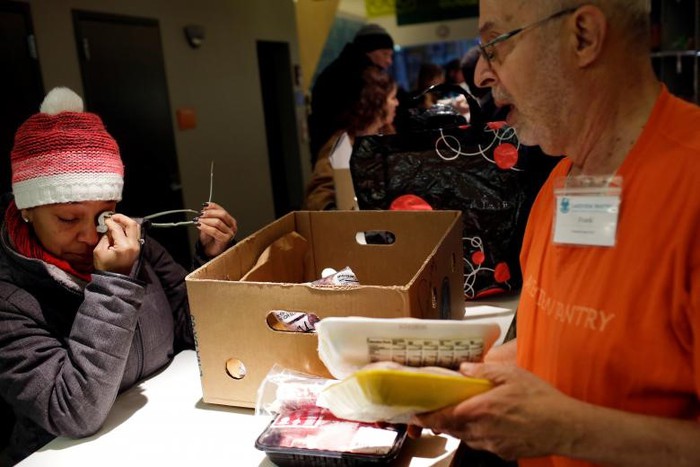 Một nhân viên TSA nhận đồ ăn miễn phí tại Lakeview Pantry ở Chicago ngày 14/1. Ảnh: Reuters |