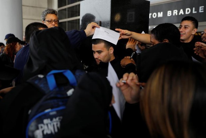 Các nhân viên TSA đăng ký phiếu thực phẩm sau cuộc họp báo tại sân bay quốc tế Los Angeles ngày 16/1. Ảnh: Reuters |
